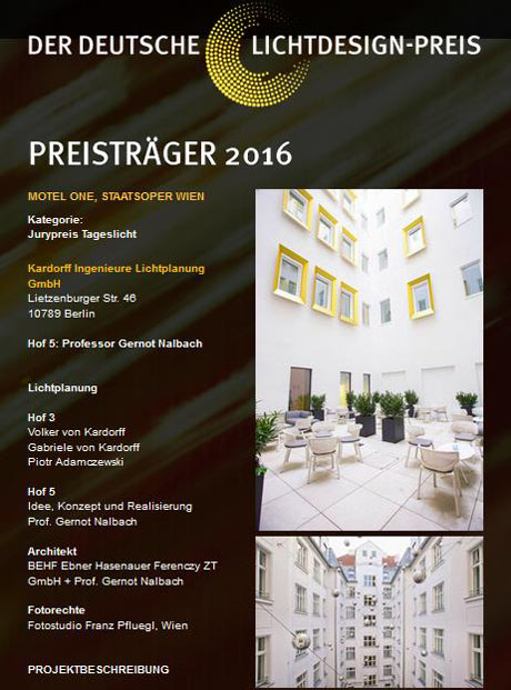 Nagrody uyzskane jako kierownik projektu dla Kardorff Ingenieure Lichtplanung